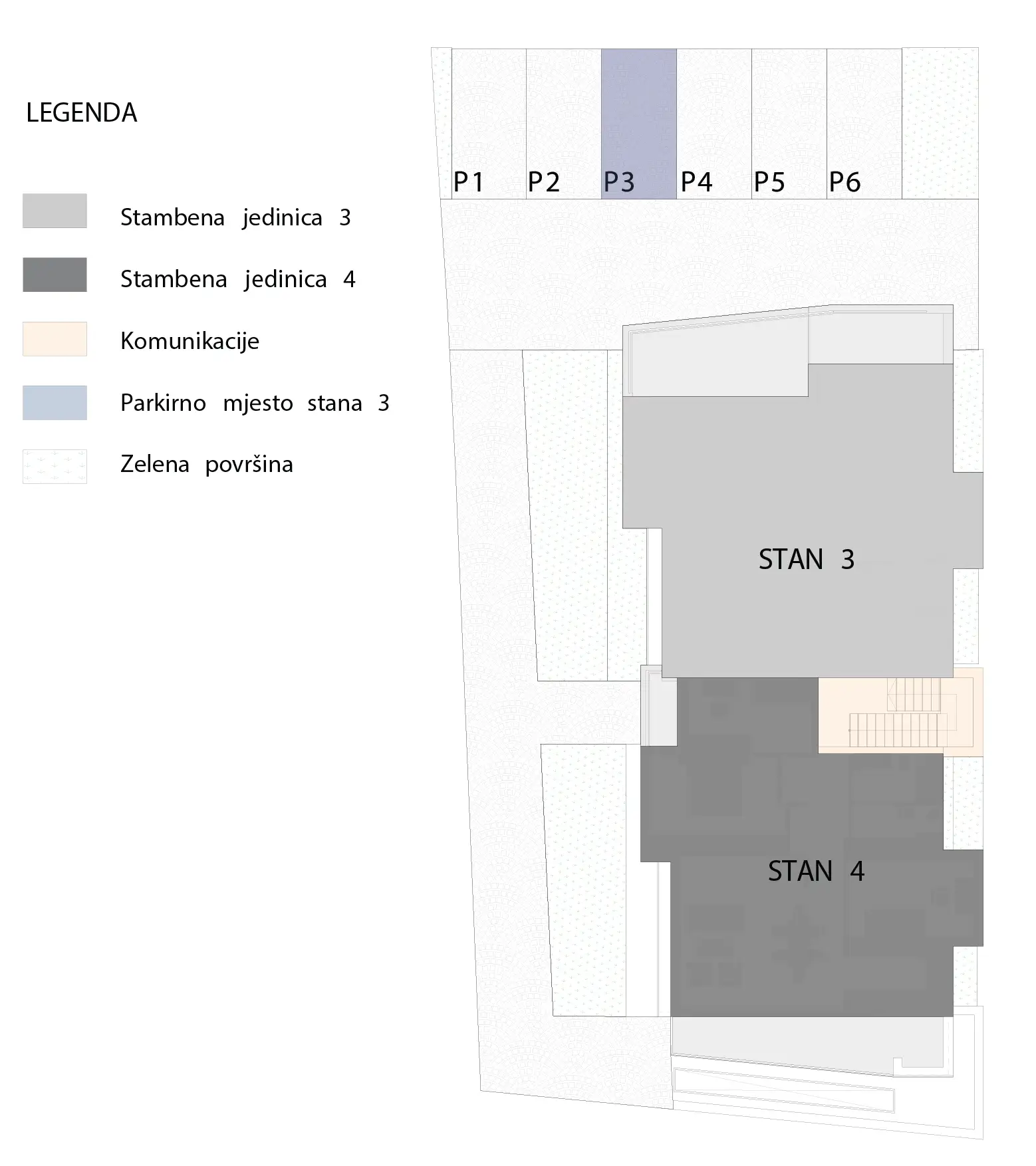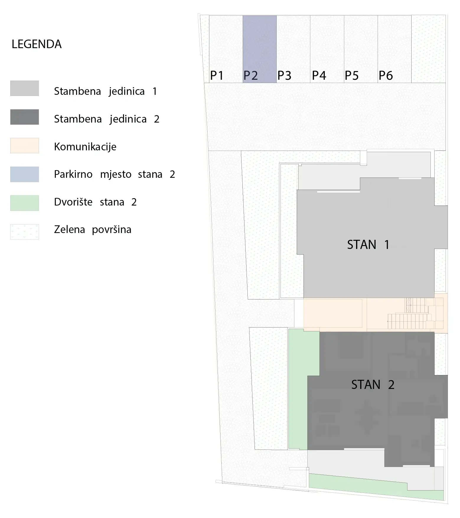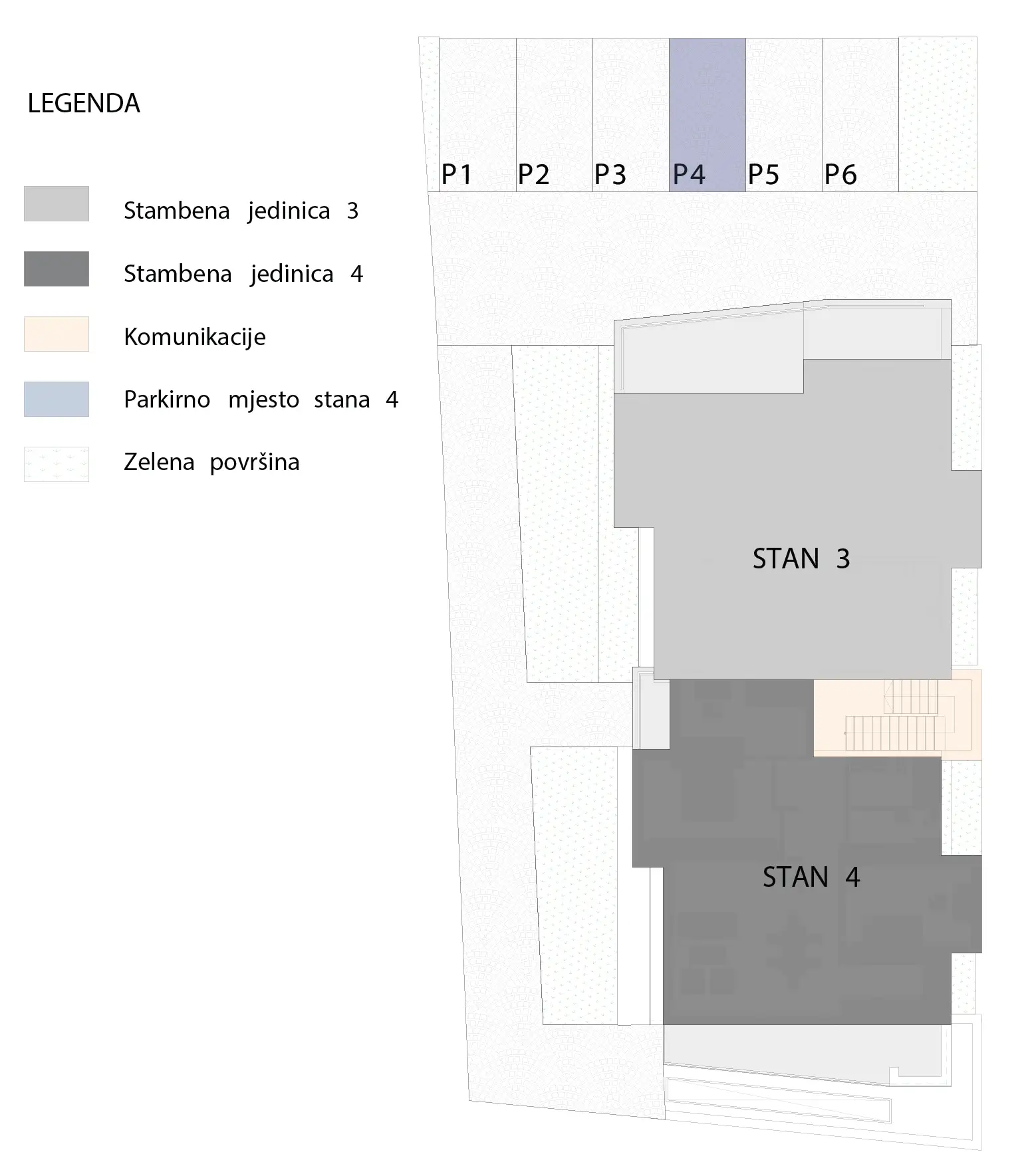 Svakom stanu pripada jedno ili dva parkirna mjesta, osiguravajući maksimalnu praktičnost za vlasnike i njihove goste.